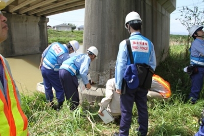 橋梁点検中のTEC-FORCE隊員(1) 橋梁点検中のTEC-FORCE隊員(2)