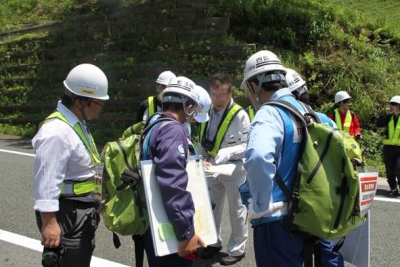 阿蘇大橋付近での打合せ TEC-FORCE(道路班:第1班)帰還式