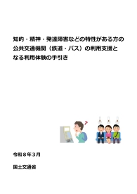 ○知的・精神・発達障害などの特性がある方の公共交通機関(鉄道・バス)の利用支援となる利用 体験の手引き(2026年3月発行) 【概要】「障害当事者・支援団体・教育機関等」、「公共交通事業者」を主な対象とした、両者が「利用体験」を一緒に作り上げていくための手引きです。 |