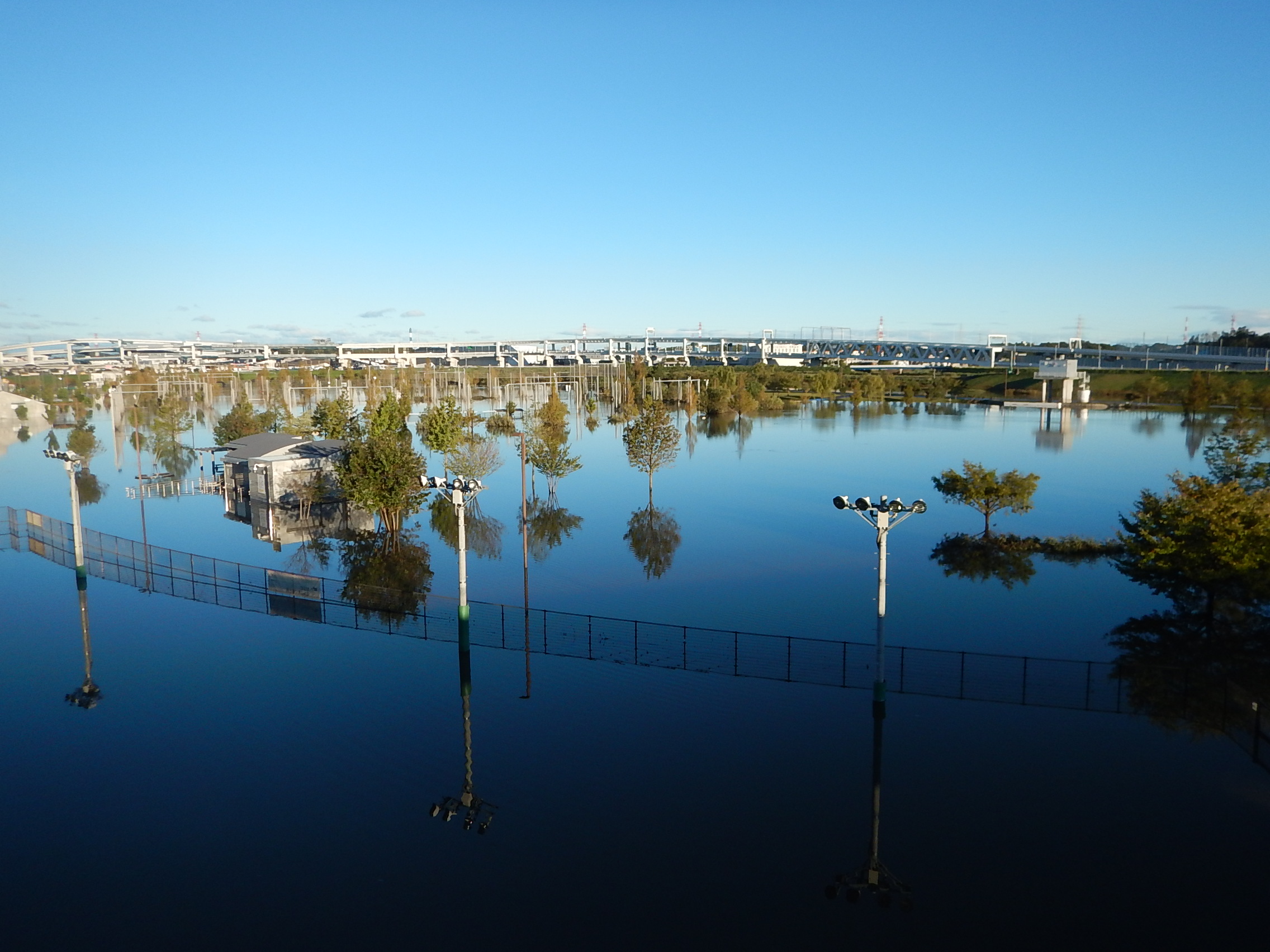 遊水地内には日産スタジアムや新横浜公園などがあり、平常時は都市の憩いの場として親しまれています。