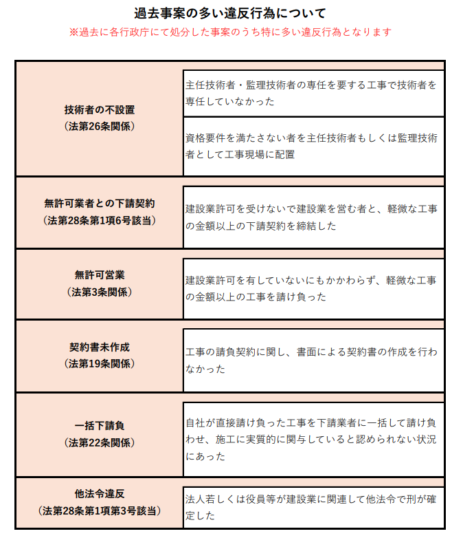 こちらです。都道府県知事許可業者に対する行政処分につきましては各都道府県にご確認お願いいたします。