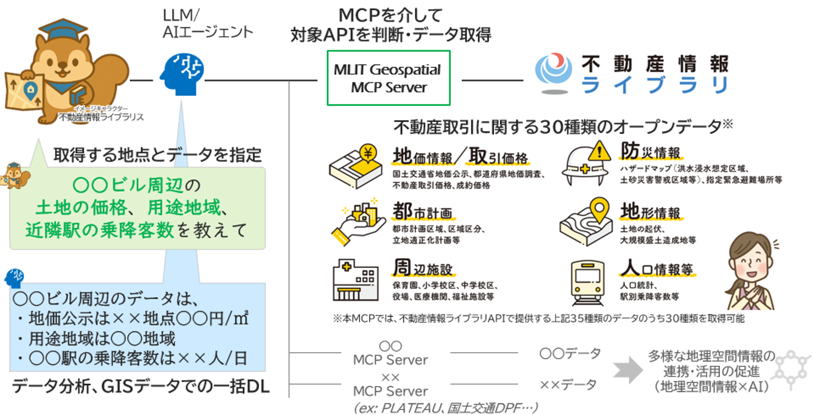 この一環として、AIを活用して自然言語で多様な地理空間情報を容易に連携・活用できる環境を提供するため「地理空間MCP Server - MLIT Geospatial MCP Server - 」(α版)を試作し、公開いたします。