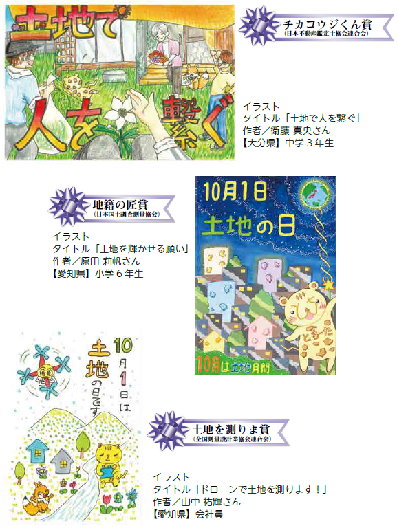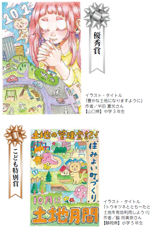毎年10月に設けられている「土地の日(十月一日)」、「土地月間」において、今一度、身近な「土地」について考え、「土地」の制度に関する理解が深まるきっかけとなるよう、空き地で遊んだ思い出や、土地が地域で上手に活用されることや大切に管理されること、土地の登記の大切さなど、「土地への思い」をつづったポスター、絵手紙やエッセイを募集したところ、多数の応募をいただきありがとうございました。