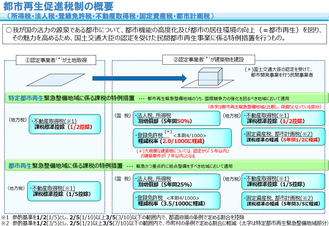 優良な都市開発を促進するため、次のような税制支援を行っています。