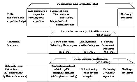 | Figure 2 Relations among public-related expenditure, Government construction investment, and public capital formation |