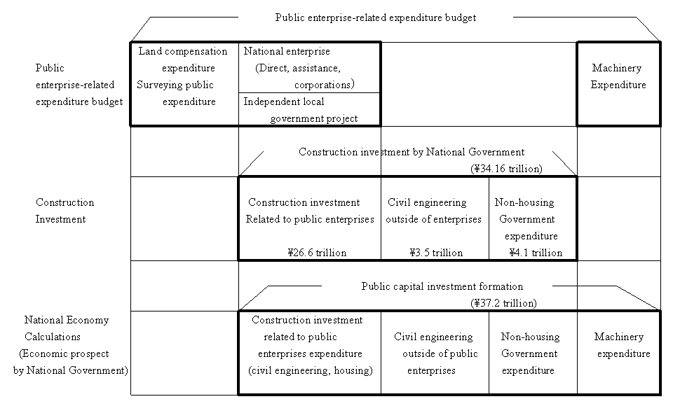Figure 2 Relations among public-related expenditure, Government construction investment, and public capital formation