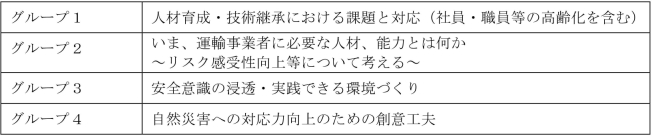 ■各グループが議論したテーマは次のとおりです。